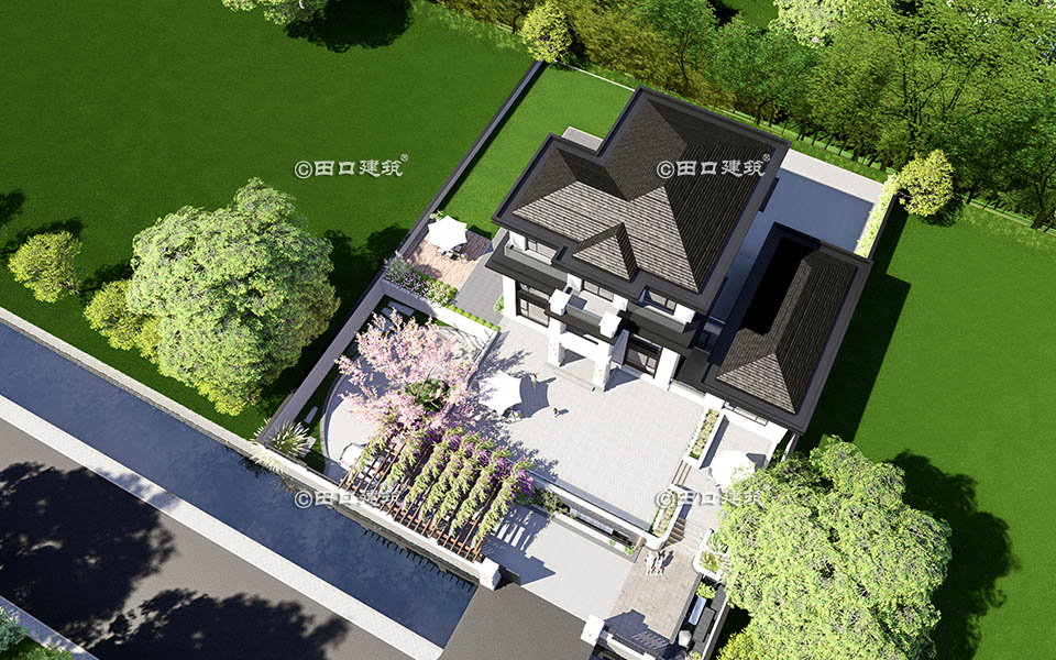 一层:堂屋、挑空中央客厅、中西厨房、餐厅、公卫;