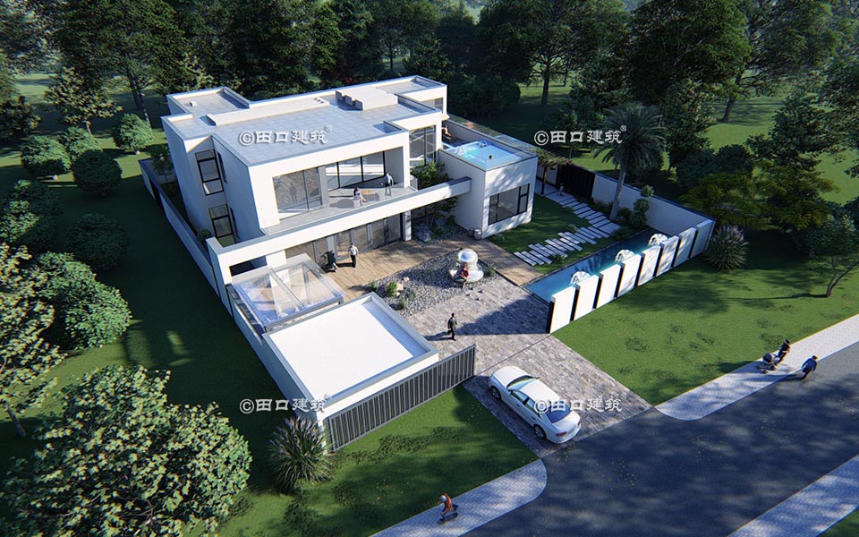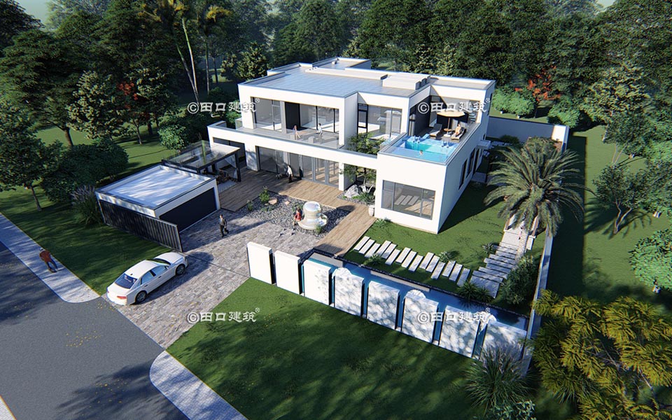 业主喜欢现代极简风格的建筑,大玻璃窗配白色外墙为基本基调。建筑风格上凸显现代精美主义建筑格调;在建筑细部设计上,不追求建筑的曲线、折线,而在用材、色彩上追求精简时尚的语言;在细节设计上寻求现代精美主义建筑纯净、雅致的美学风格。