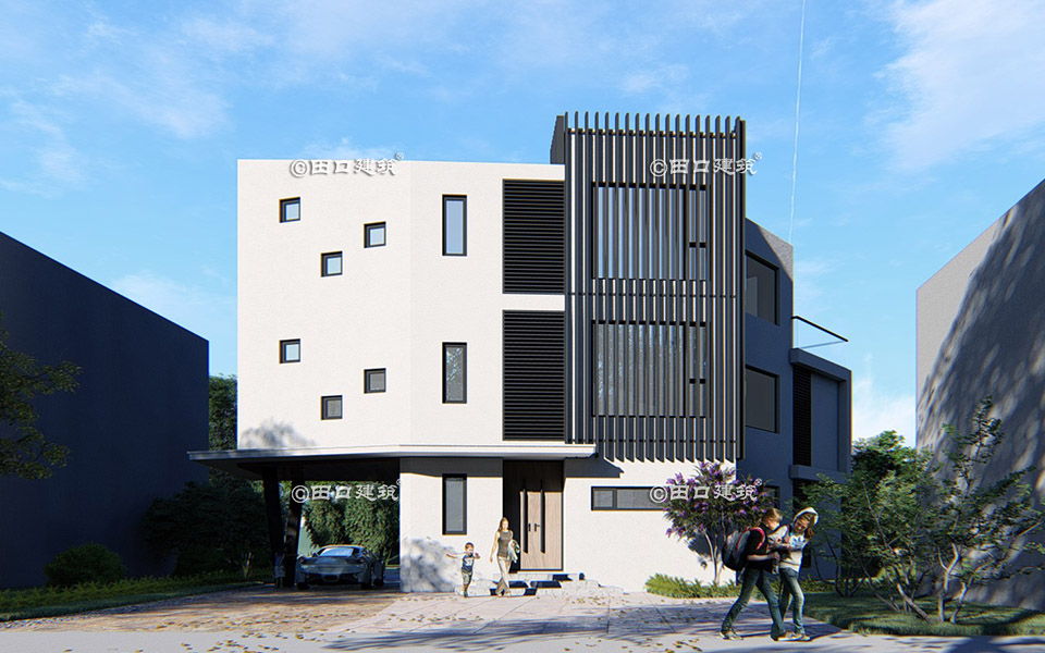 院子里做了一个浅水池,部分硬化铺装,草皮为主,加汀步。 内部户型合里,都是套房设计,三层朝向水库视线开阔,留了露台,以便业主将来户外活动;