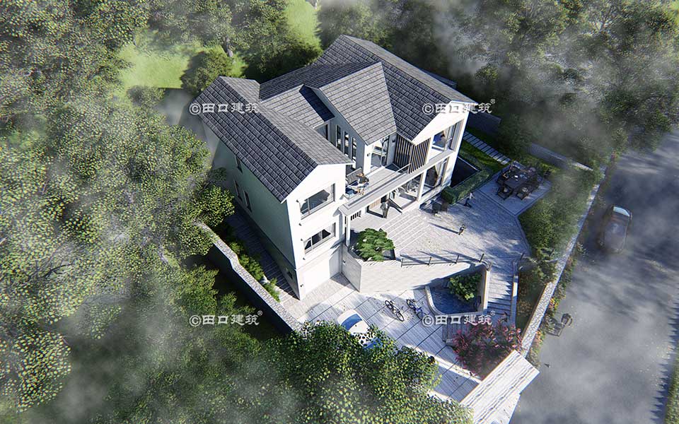 业主是室内设计师,对设计有自己的理解,审美比较超前,为了迎合当地的建房大环境,经与业主沟通,最终设计现代中式风格,增加室内室外互动的空间,同时充分利用地形,做部分地下室。